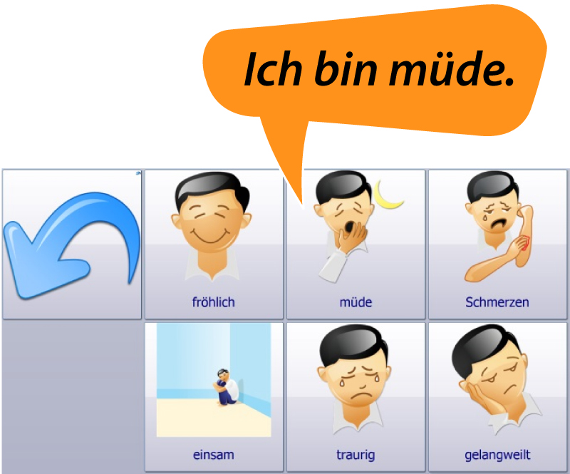 Ist Schriftsprache noch nicht erlernt oder verlorengegangen, wird Symbolkommunikation genutzt: